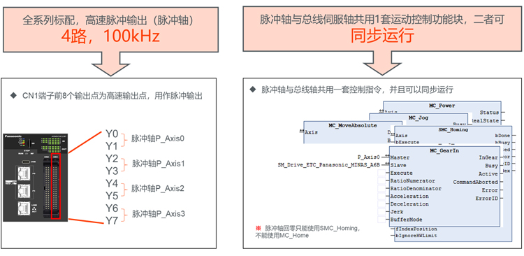 4路高速脈沖輸出,脈沖伺服(或步進(jìn))可與總線(xiàn)伺服同步運(yùn)行。