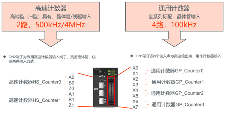 通用部:4通道,晶體管輸入,單相最高100KHz,雙相最高50KHz。